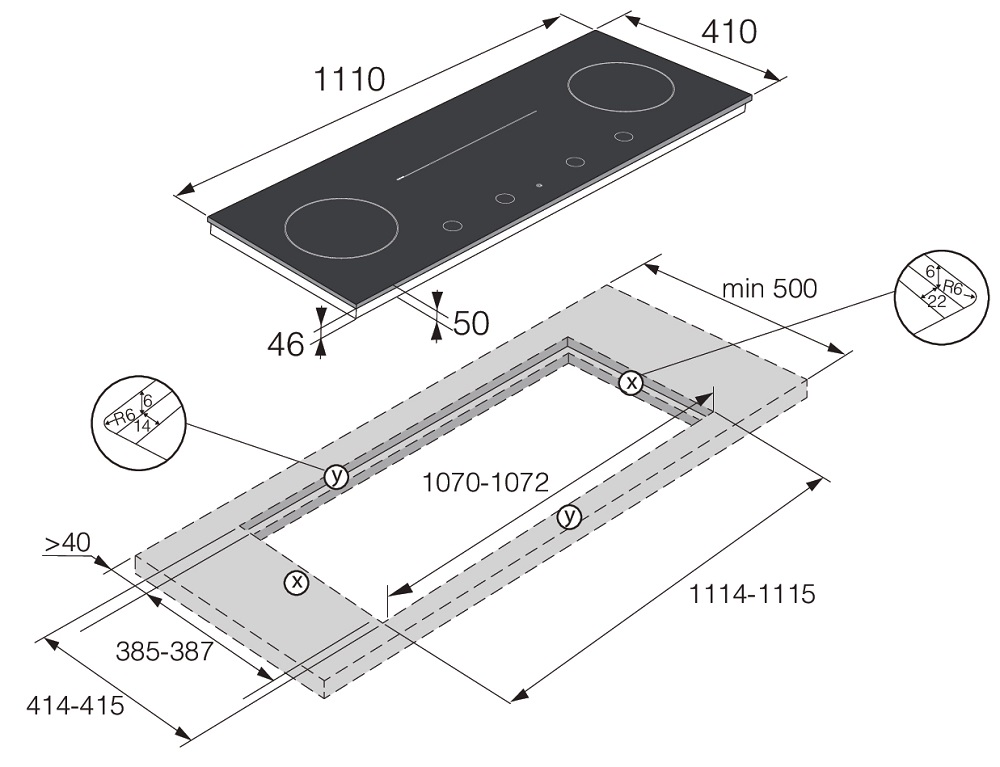 • Обработка края: Прямой край для установки вровень со столешницей.